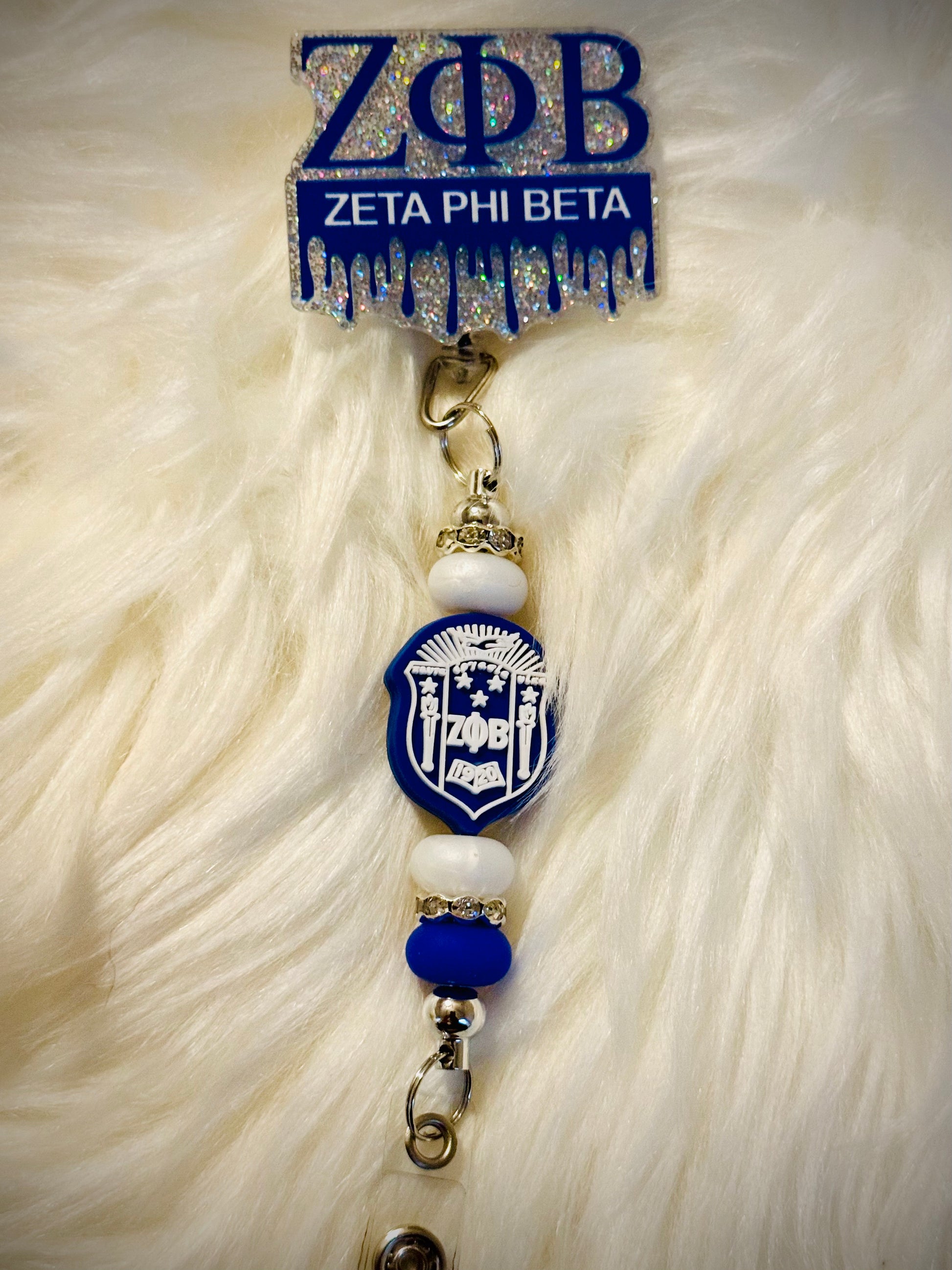 Beaded Badge Reel - Acrylic placed on top of badge reel with beaded accents to match.